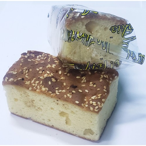 пирог масляно-бисквитный с нежной пористой структурой с ароматом сыра "Рокфор", сверху декорирован кунжутом