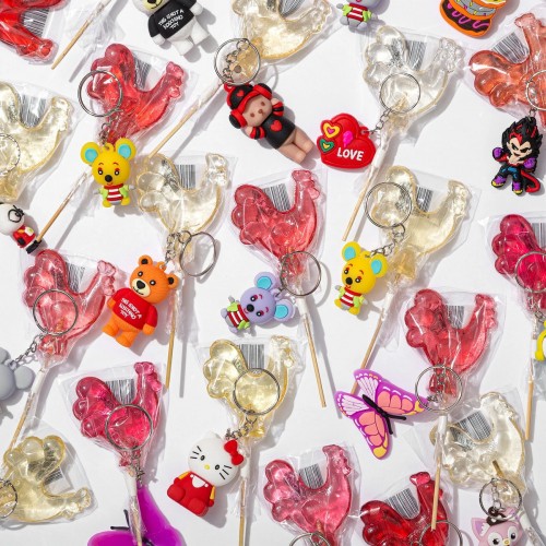 різнокольорові цукрові льодяники на бамбуковій паличці у формі півника + брелок