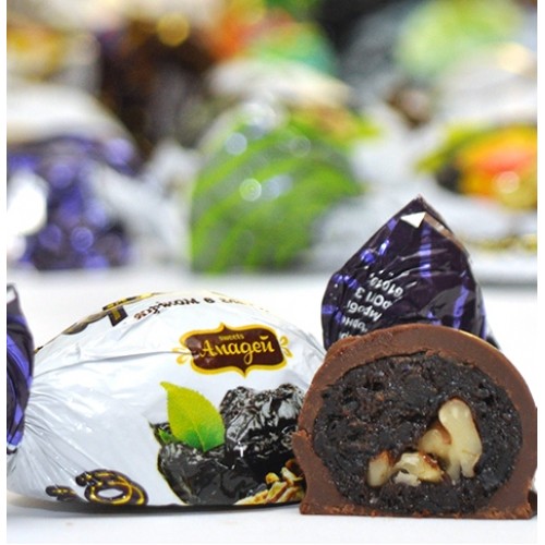 цукерки ЧОРНОСЛИВ З ВОЛОСЬКИМ ГОРІХОМ в глазурі 1 кг Амадей