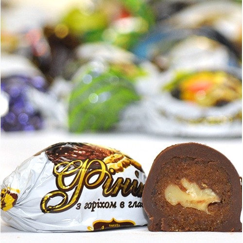 цукерки ФІНІК З ВОЛОСЬКИМ ГОРІХОМ в глазурі 1 кг Амадей