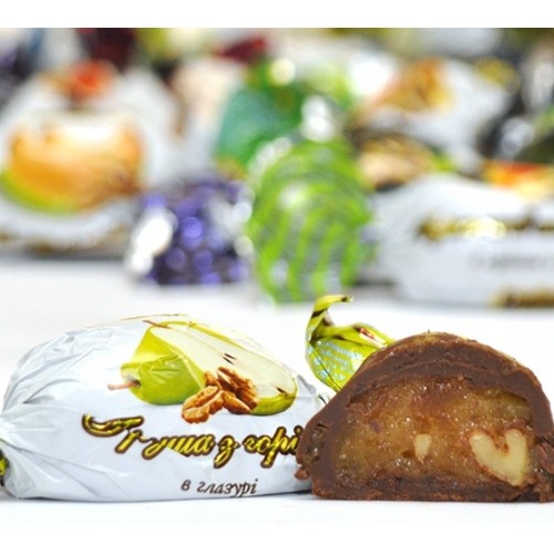 цукерки ГРУША З ВОЛОСЬКИМ ГОРІХОМ в глазурі 1 кг Амадей