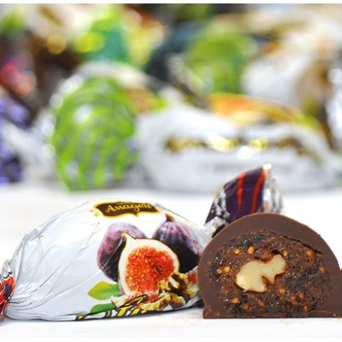 цукерки ІНЖИР З ВОЛОСЬКИМ ГОРІХОМ в глазурі 1 кг Амадей