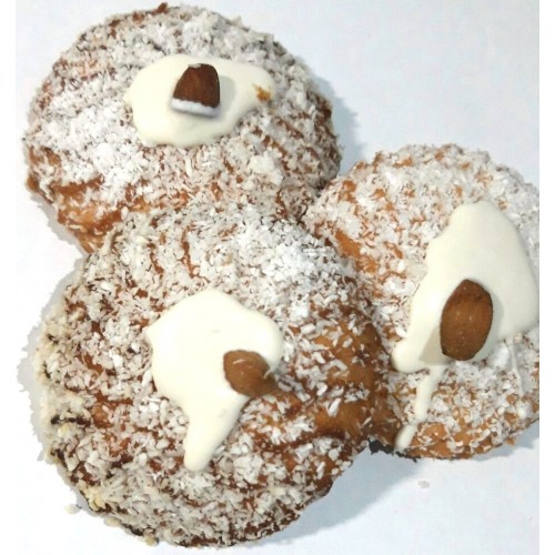 м'яке, просочене сиропом пісочне печиво у вигляді квітки, декороване мигдалем та кокосовою стружкою