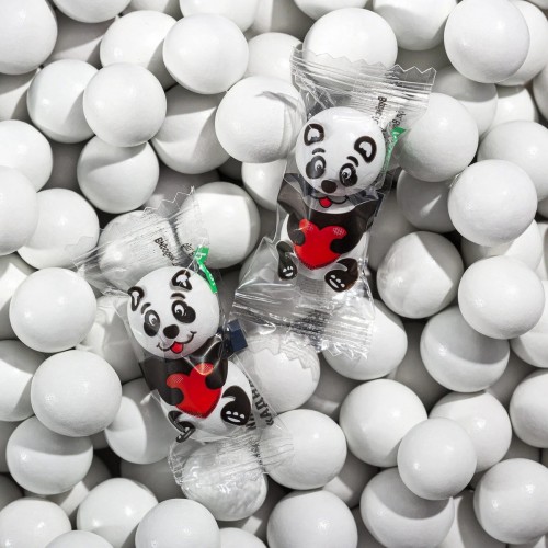 рисові кульки з какао начинкою, покриті шоколадом та цукровою скоринкою, на флоу-паку зображення панди